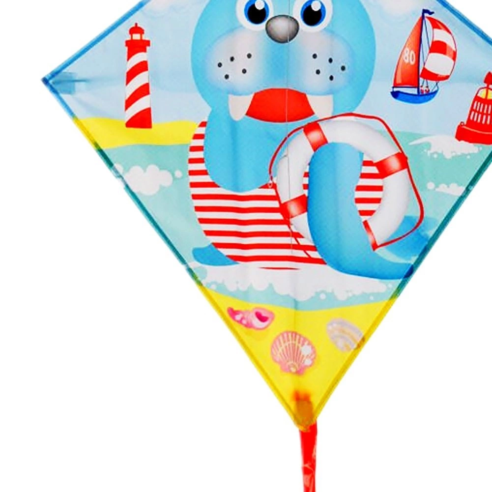 Lichte en duurzame kindervlieger met een zeehondenmotief voor uren plezier in de buitenlucht. Dankzij de afmetingen 57 × 52 cm, de lange staart en een stabiele vlucht komt hij prachtig tot zijn recht aan de hemel. Gemaakt van hoogwaardige polyester met levendige kleuren, voorzien van een comfortabel handvat en een 36 m lijn voor eenvoudig bedienen, ook voor beginners.