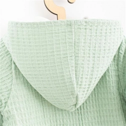 Ontdek comfort en functionaliteit in één. De baby muslin overall met capuchon NEW BABY Comfort Clothes in een elegante saliegroene kleur is gemaakt van aangename, dikkere mousseline met katoenen voering. Deze tijdloze stof is ademend, zacht en tegelijk duurzaam, ideaal voor dagelijks gebruik én speciale gelegenheden.
