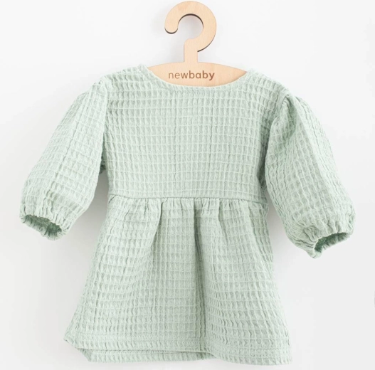 Ontdek comfort en stijl in één. De baby mousseline jurk NEW BABY Comfort clothes in de populaire saliegroene tint valt op door de moderne oversized A-lijn, die kinderen volop bewegingsvrijheid biedt. De dikkere, maar zachte mousseline staat bekend om zijn ademend vermogen en prettige touch – ideaal voor de gevoelige kinderhuid.