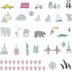 Continenten, oceanen, windstreken, bezienswaardigheden en motieven