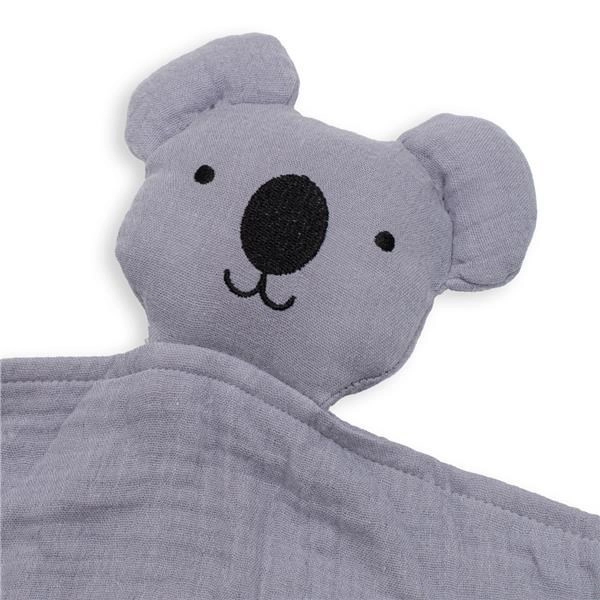 Zacht mousseline knuffeldoekje met een koala-motief van het merk New Baby geeft je baby een gevoel van veiligheid en helpt makkelijker in slaap te vallen. Gemaakt van 100% organisch katoen met de fijne structuur van mousseline, is het ademend, aangenaam om aan te raken en geschikt vanaf de eerste levensdagen. Het minimalistische design in grijs past perfect bij andere mousseline-accessoires en is ideaal als cadeau voor een babyshower.
