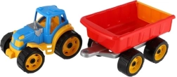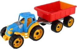 De tractor valt op door zijn levendige kleuren en duurzame plastic constructie, die zorgt voor duurzaamheid en veiligheid tijdens het spelen.