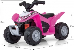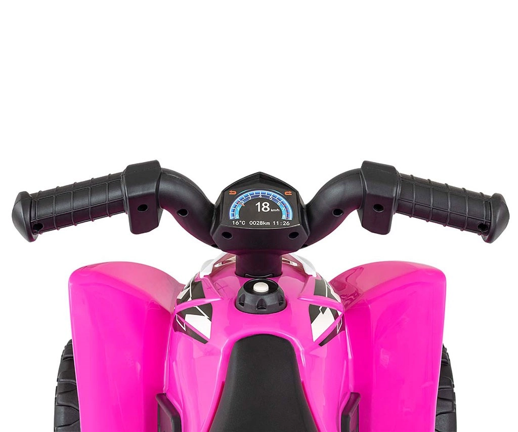 Deze elektrische kinderquad in het roze combineert sportief design met een veilige constructie. Dankzij de gelicentieerde HONDA-look en de hoogwaardige afwerking van duurzame materialen beleven kleine bestuurders realistische pret. Bij het intrappen van het pedaal rijdt de quad weg en gaat de koplamp aan, wat de rijervaring versterkt.