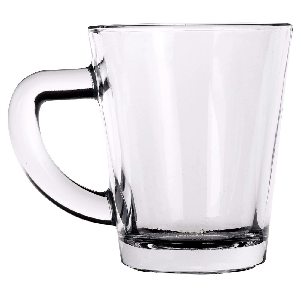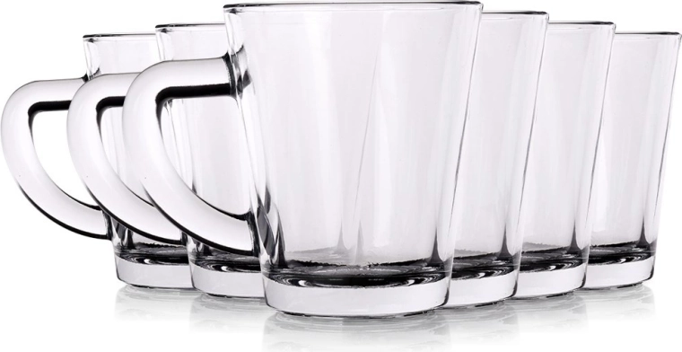 Stijlvolle set van zes glazen espressokopjes met een inhoud van 70 ml, perfect voor alle koffieliefhebbers. Gemaakt van duurzaam, helder glas met een comfortabel oor voor een veilige grip. Dikke wanden, klassiek design en eenvoudig te reinigen in de vaatwasser maken deze glazen een praktische keuze voor thuis en horeca.