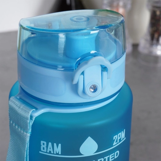 Geniet van regelmatige hydratatie met deze lichte en duurzame fles van 1 liter. Dankzij de tijdsaanduidingen en motiverende frases drink je gelijkmatig gedurende de dag, terwijl de precieze meetschaal in milliliters (100–900 ml) en fl oz helpt je inname te controleren. De brede hals maakt vullen en reinigen eenvoudig, en het flipdeksel met vergrendeling tegen onbedoeld openen zorgt voor betrouwbare lekdichtheid.