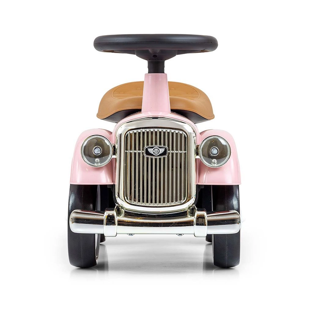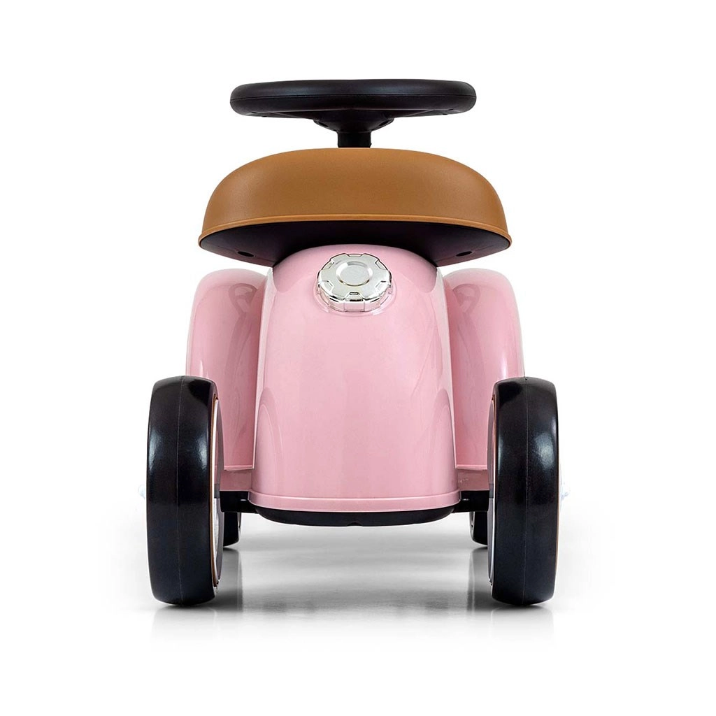 De schattige loopauto in retrostijl combineert een iconische look met doordachte details: chromen accenten, het ROYCE-embleem en een comfortabele, gevormde zitting in een bruine tint. Dankzij het lichte kunststof chassis is hij gemakkelijk te dragen en kunnen kinderen hem moeiteloos aandrijven met hun eigen beentjes.