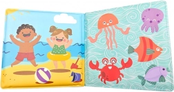 Een leuk en veilig badboekje voor de allerkleinsten met een geïntegreerd piepertje maakt van elk badmoment een ontdekking. Waterbestendige, zachte pagina’s met contrasterende kleuren stimuleren het zicht, leren dieren, vormen en kleuren en ondersteunen de fijne motoriek. Het materiaal is vrij van BPA, gemakkelijk schoon te maken en ideaal voor dagelijks spelen in bad.