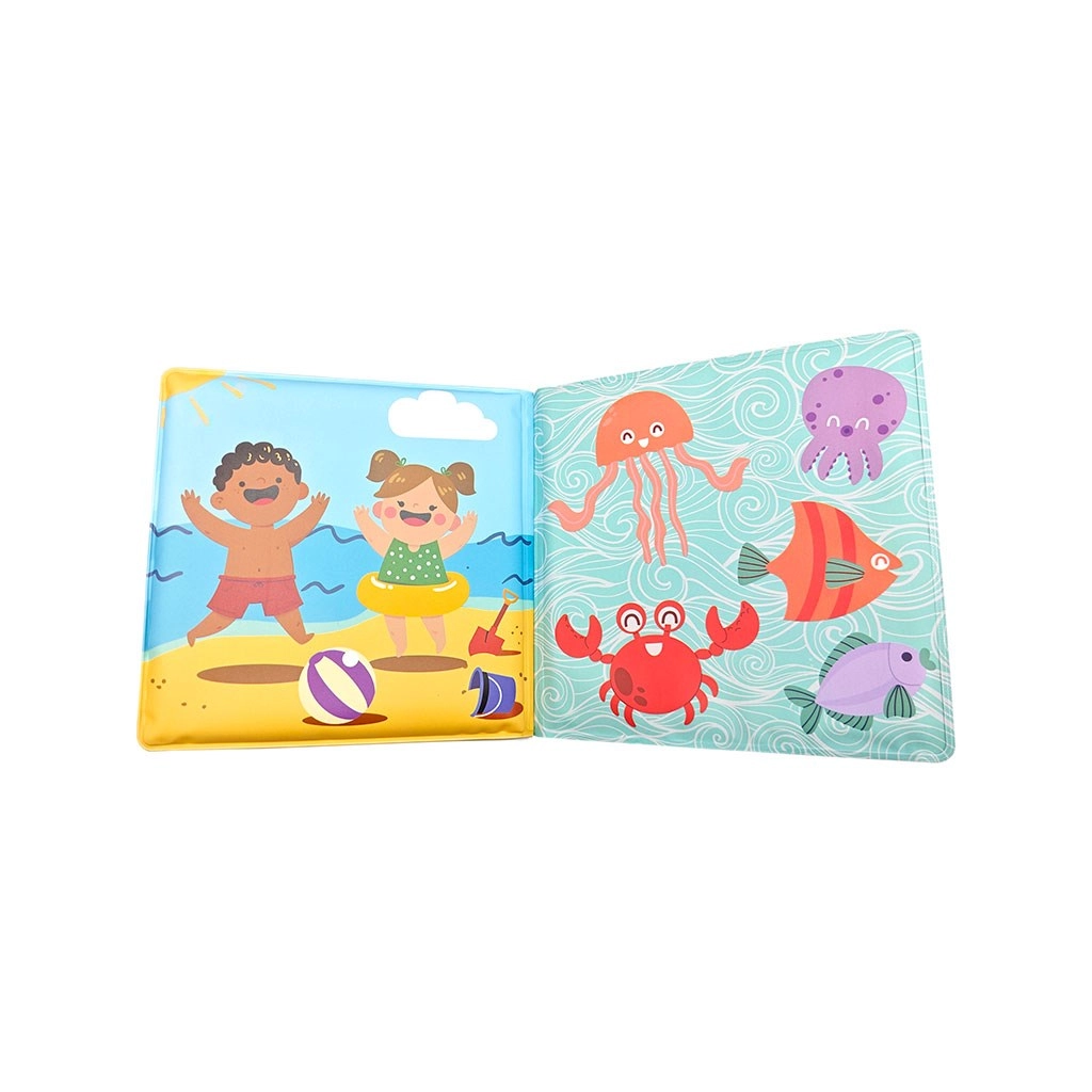 Dit eerste educatieve badboekje is ontworpen voor baby’s vanaf de geboorte. Zachte, afwasbare en drijvende pagina’s met rijke illustraties trekken de aandacht van het kind en ondersteunen natuurlijk leren tijdens het spelen. Het geïntegreerde piepertje voegt een auditieve prikkel toe die motiveert om te knijpen en de grijpreflex oefent.