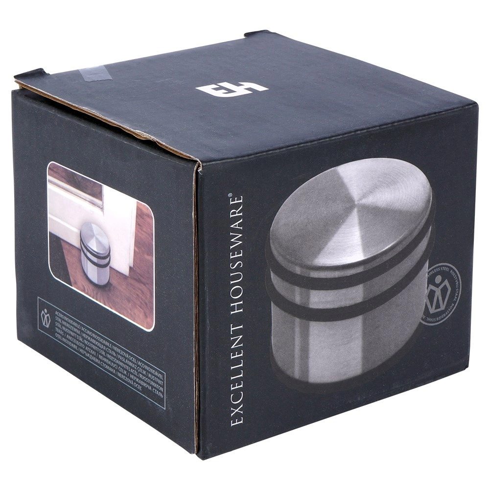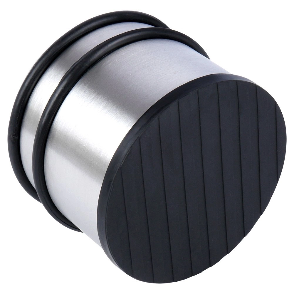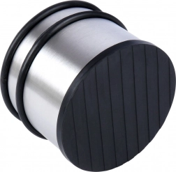 Robuuste deurstop met een modern roestvrijstalen look voorkomt dat deuren vanzelf dichtvallen of tegen muren en meubels slaan. Massieve constructie en een anti-slip rubberen basis garanderen stabiliteit op de meeste vloertypen.