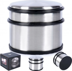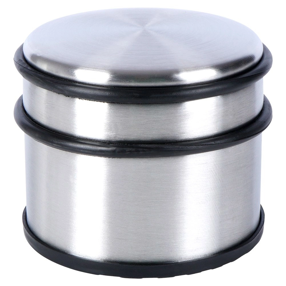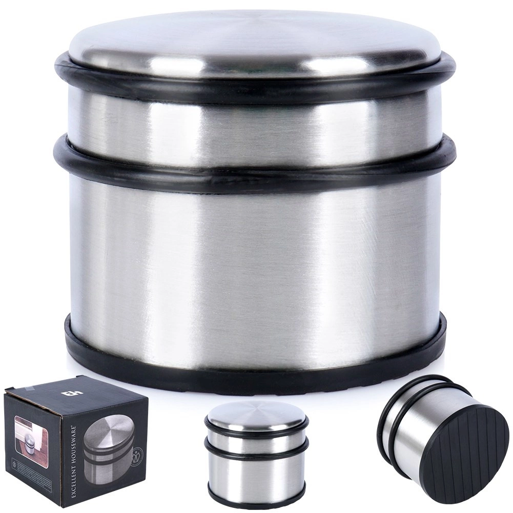 Praktische en stabiele deurstop van roestvrij staal met een gewicht van 1,1 kg voorkomt ongewenst dichtvallen en beschermt muren en meubels. Dankzij de rubberen elementen rondom en aan de onderzijde dempt hij schokken en glijdt hij niet over de vloer. Zonder boren of lijmen, gewoon neerzetten. Ideaal voor huis, kantoor en salon.