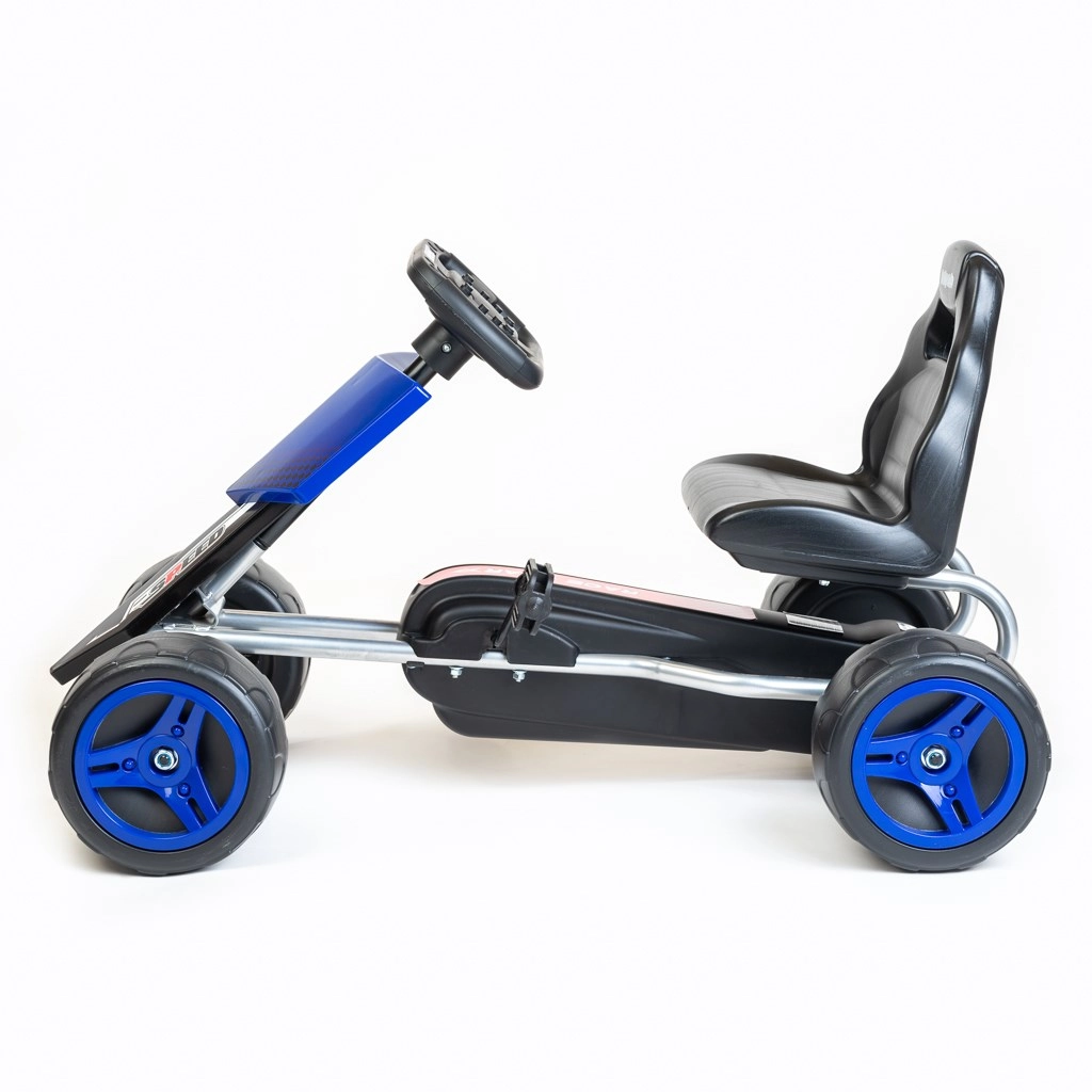 De kart is uitgerust met een kettingoverbrenging met voor- en achteruitfunctie, zodat uw kind gemakkelijk kan optrekken en manoeuvreren. De verstelbare sportzitting met 2 standen past zich aan de groei van het kind aan en biedt comfortabel zitten. Voldoet aan de Europese veiligheidsnormen, zodat u kunt vertrouwen op veilig gebruik.