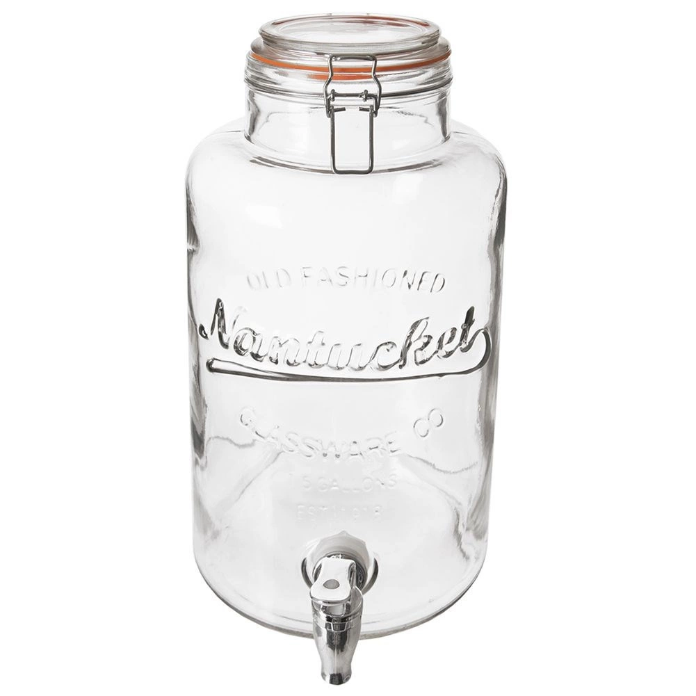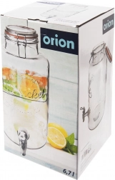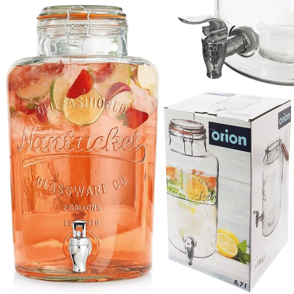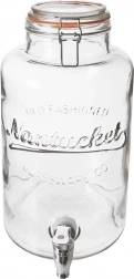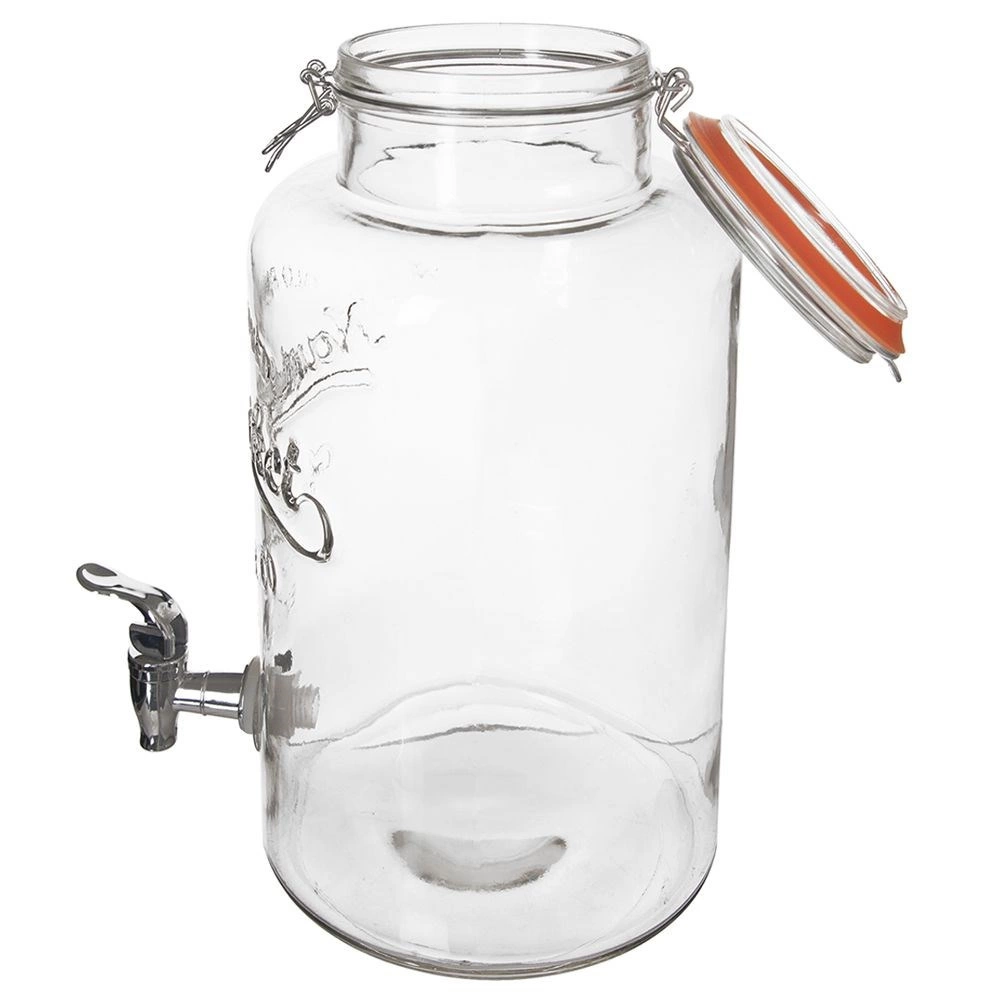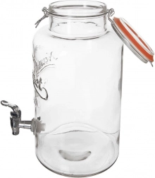 Stijlvolle glazen drankdispenser met een inhoud van 6,7 l, voorzien van een metalen kraan en een luchtdicht klikdeksel. Ideaal voor huisgemaakte limonade, fruitwater en ijsthee. De grote opening maakt vullen en reinigen makkelijk, het sterke dikwandige glas met reliëf presenteert de inhoud prachtig en het deksel met siliconen afdichting beschermt dranken tegen insecten.
