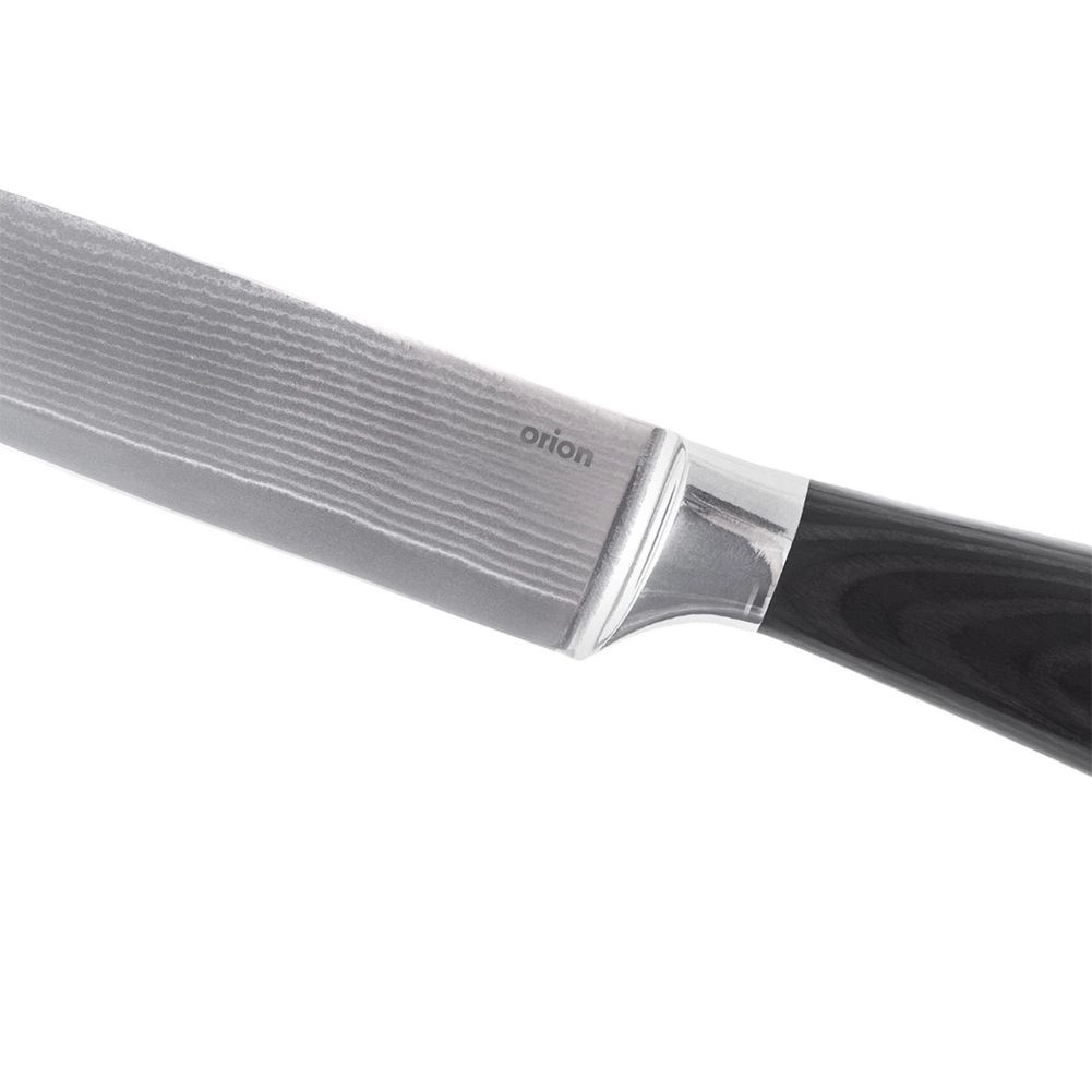 Universeel keukenmes met een totale lengte van 30,5 cm en een lemmet van 17 cm, ideaal voor dagelijks snijden, hakken van groenten, fruit en kruiden. Gemaakt van 67-laags damaststaal voor uitzonderlijke scherpte en duurzaamheid, met een ergonomisch handvat van pakkahout dat bestand is tegen vocht, warmte en chemicaliën. Uitstekende balans en een comfortabele grip zorgen voor nauwkeurig en veilig werken in de keuken.