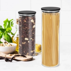 Dankzij het transparante lichaam heb je altijd perfect zicht op de inhoud en de hoeveelheid. Het minimalistische ontwerp met zwart deksel past uitstekend in een moderne keuken en ondersteunt de overzichtelijke opslag van droge etenswaren – van pasta en rijst tot gedroogd fruit of paddenstoelen.