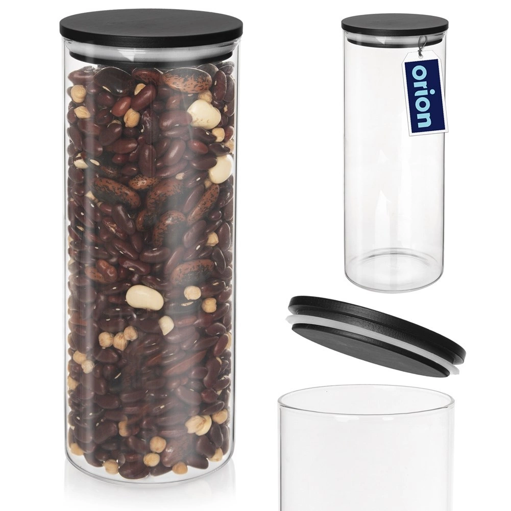 Elegante glazen pot met een inhoud van 1,2 l, voorzien van een zwart deksel en siliconen afdichting, houdt je etenswaren langer vers. Ideaal voor koffie, pasta, noten, peulvruchten of muesli. Duurzaam borosilicaatglas, luchtdichte afsluiting en eenvoudig onderhoud – de pot zonder deksel kan in de vaatwasser.