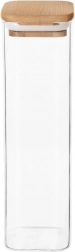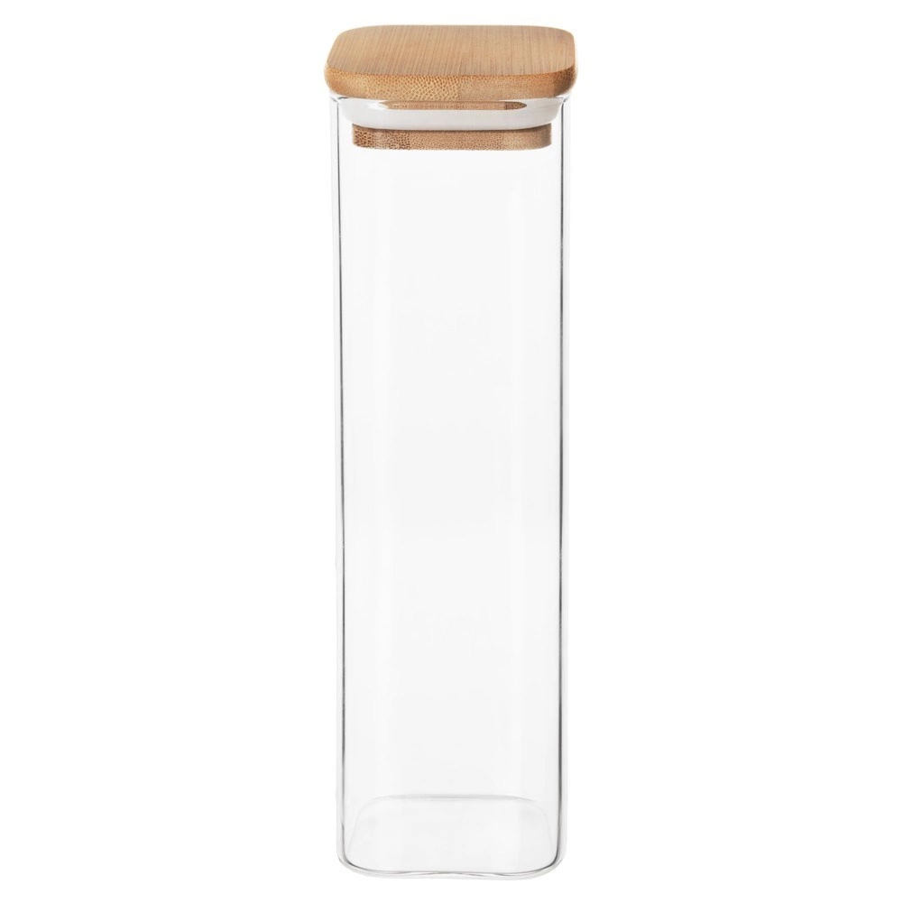 Houd orde en versheid met deze praktische glazen pot met bamboe deksel en siliconen afdichting. Het heldere borosilicaatglas is bestand tegen temperatuurschommelingen en laat je de inhoud in één oogopslag controleren. De minimalistische look en het natuurlijke bamboe maken het een elegante keukenaccessoire.