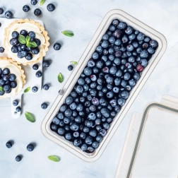 Het lage profiel en het platte deksel besparen ruimte in de koelkast en maken veilig stapelen van meerdere bakjes mogelijk.