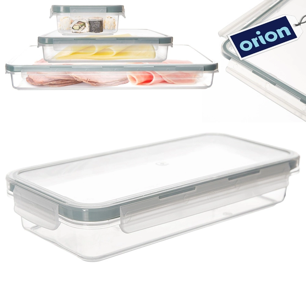 Universele lage voedseldoos van duurzaam, transparant plastic voor bewaren, vervoeren en organiseren van maaltijden. Dankzij het stevige deksel met 4 clips en de hoogwaardige siliconen afdichting blijft de inhoud beschermd tegen lucht en vocht, zodat voedsel langer vers blijft.