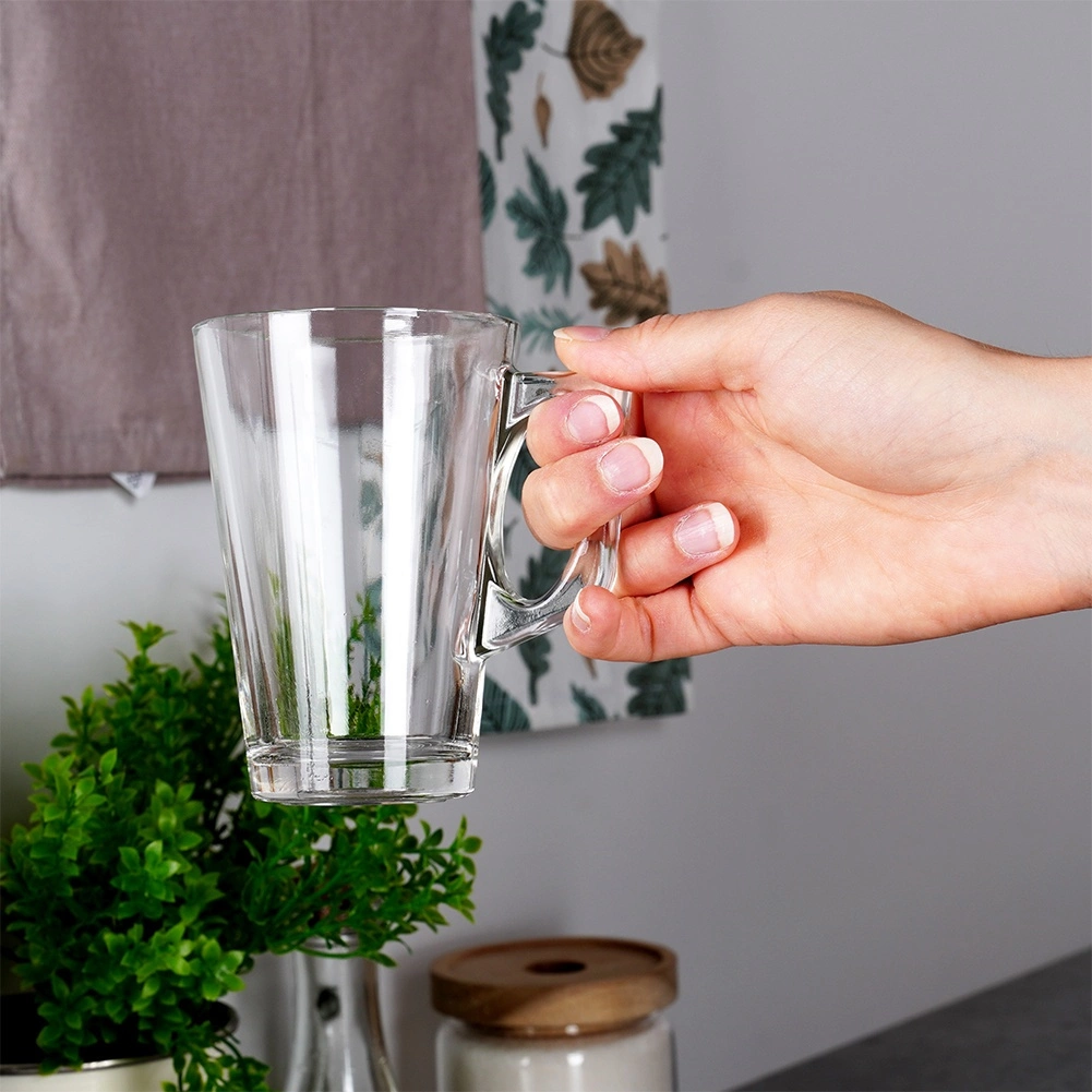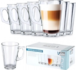 De set van 6 glazen met oor en een inhoud van 255 ml combineert tijdloos design met dagelijks gebruiksgemak. Het heldere glas accentueert gelaagde latte, thee en huisgemaakte limonades, terwijl het robuuste oor zorgt voor een veilige en comfortabele grip. Dankzij de dikkere wanden zijn de glazen stabiel en duurzaam.
