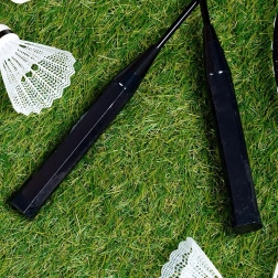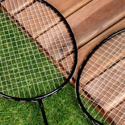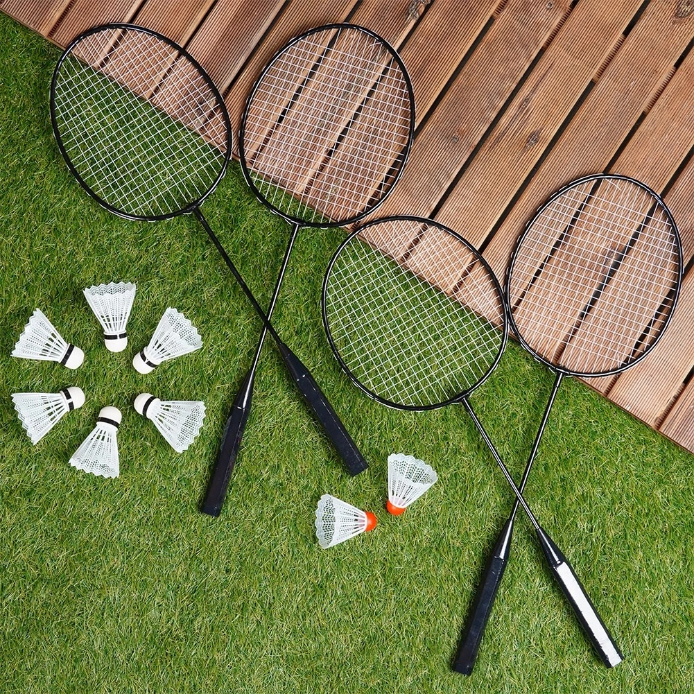 Vier rackets en acht shuttles maken het mogelijk direct te starten met dubbelspel en spelers te laten afwisselen zonder onderbreking.