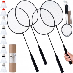 - Complete uitrusting voor 4 spelers: 4 rackets, 8 shuttles