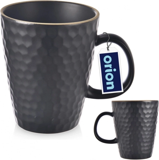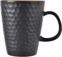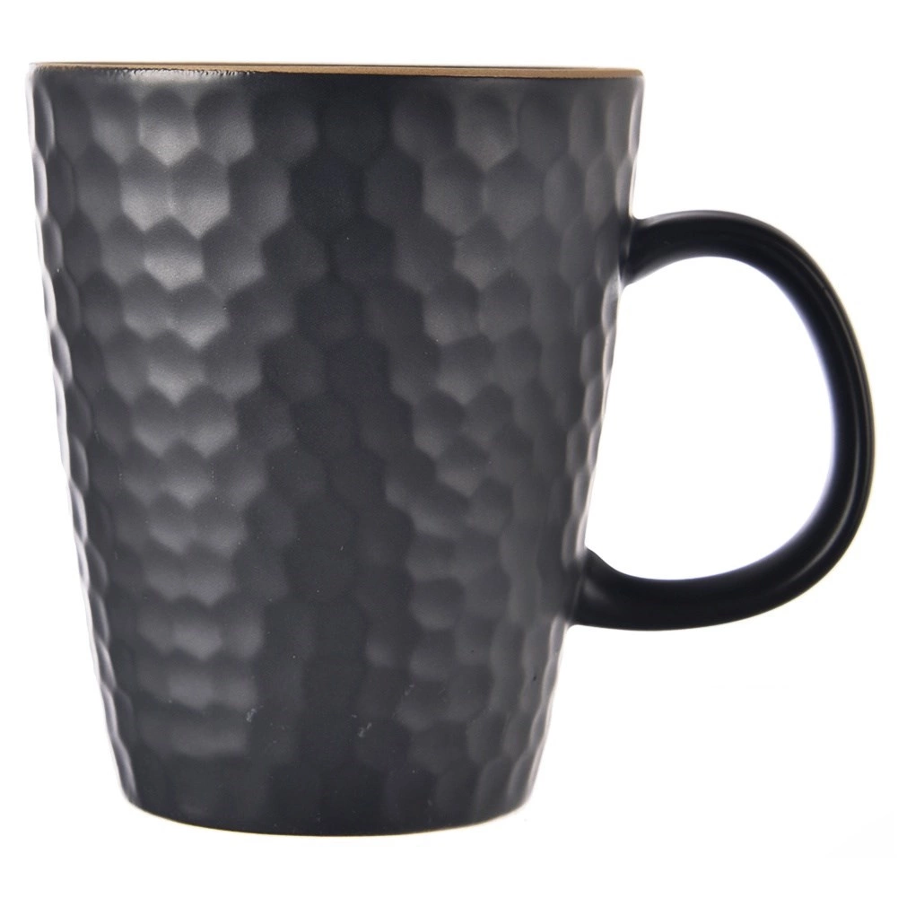 Ontdek de praktische en tijdloze mok uit de TEA TIME-collectie, die perfect is als aanvulling op je thuisservies. De zwarte matte glazuur met een reliëf in honingraatmotief geeft de mok een moderne uitstraling en verbetert tegelijk de grip. Dankzij de inhoud van 420 ml geniet je volop van je favoriete koffie, thee of warme cacao.