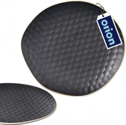 De matte, fijn gehamerde/“pels”-textuur geeft het bord een moderne look en betere grip. De contrasterende lichte rand accentueert de geserveerde gerechten.