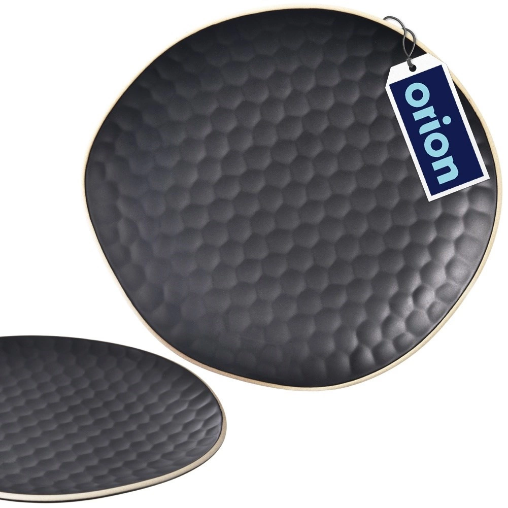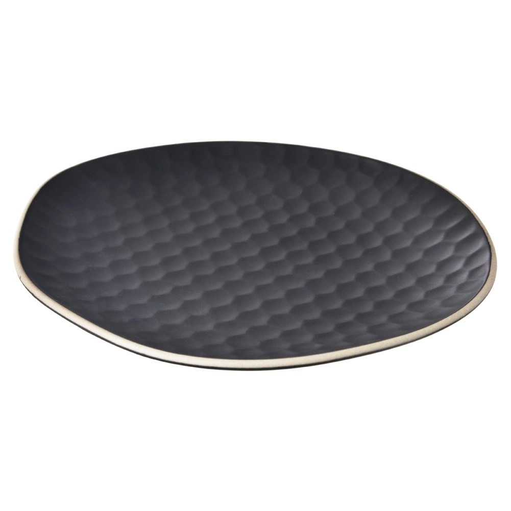 Elegant dessertbord van hoogwaardig steengoed in zwart, perfect als aanvulling op een moderne of klassieke tafel. De onregelmatige ronde vorm en de matte, gestructureerde afwerking met pelsmotief geven het bord een origineel karakter en verbeteren tegelijk de grip. Dankzij de compacte afmetingen is het ideaal voor het serveren van kleine desserts, hapjes of voorgerechten.