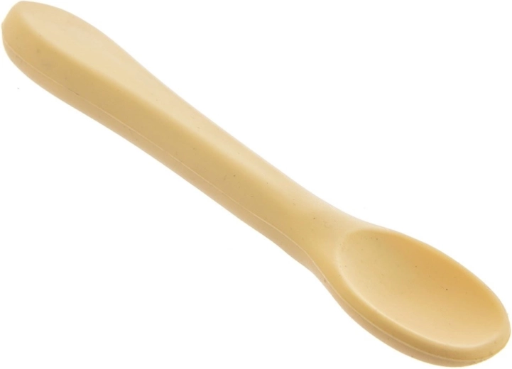 Praktische siliconen kinderlepel van 14 cm voor de allerkleinsten tot 3 jaar. Hij is zacht en veilig voor gevoelige tandvlees, zonder scherpe randen, heeft een ergonomische vorm voor kleine handjes en is vaatwasmachinebestendig. Ideaal voor het aanleren van zelfstandig eten.