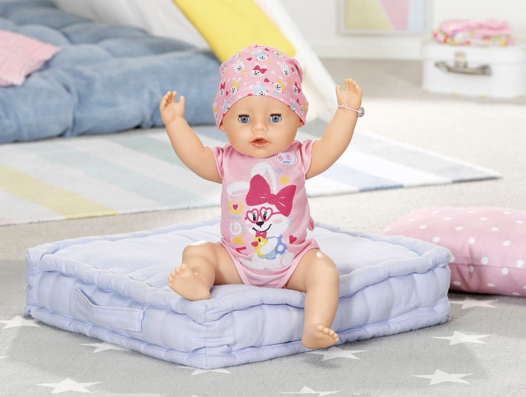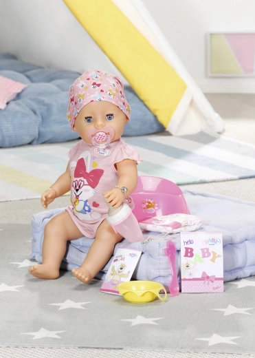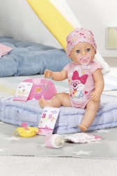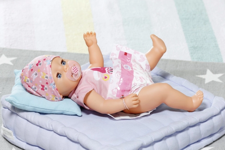 De pop kan water drinken uit het flesje, pap eten, plassen in de luier en op het potje, poepen en echte tranen huilen – allemaal zonder batterijen. Er zijn 10 accessoires inbegrepen die alle functies ondersteunen en inspireren tot de ontwikkeling van empathie, communicatie en verantwoordelijkheid.
