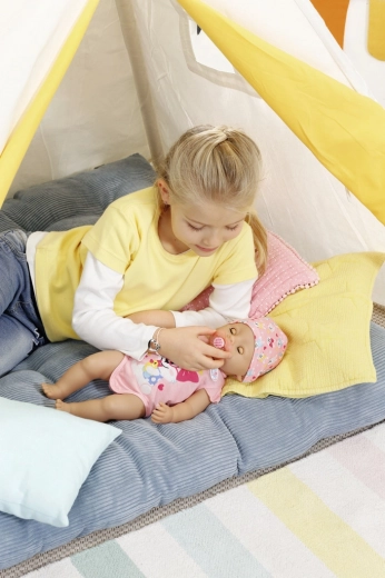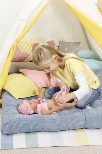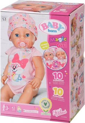 Ontdek de magie van verzorgingsspel met de pop BABY BORN meisje 43 cm. Dankzij het Soft Touch-materiaal is ze heerlijk zacht, makkelijk aan te kleden en zijn haar armen, benen en hoofd goed beweegbaar. De magische speen opent en sluit de ogen door simpelweg te draaien – en dat in elke positie. Zonder speen sluiten haar ogen automatisch wanneer ze op haar rug ligt.