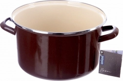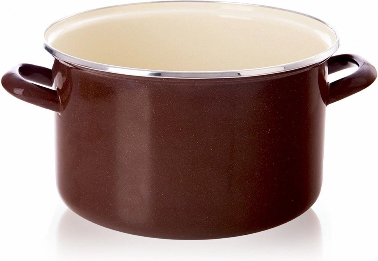 Deze elegante geëmailleerde pan uit de Brown-collectie is ideaal voor dagelijks koken, stoven en opwarmen. De inhoud van 6,5 l biedt voldoende ruimte voor soepen, sauzen en porties voor het gezin. De bruine buitenste glazuurlaag, beige binnenkant en roestvrijstalen rand geven het kookgerei een tijdloze uitstraling en verhogen tegelijk de slijtvastheid.