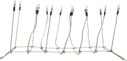 Metalen doorvoeren aan de uiteinden van het touw maken eenvoudige en flexibele bevestiging tussen twee vaste punten mogelijk.