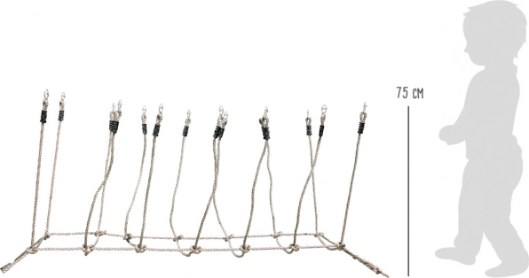 De SMALL FOOT touwbrug is een geweldige aanvulling voor de tuin of speeltuin. Hij biedt kinderen een leuke en veilige manier om evenwicht, gripkracht en coördinatievaardigheden te trainen. De montage is dankzij de metalen doorvoeren zo gedaan – span de brug eenvoudig tussen twee vaste punten, bij voorkeur bomen.