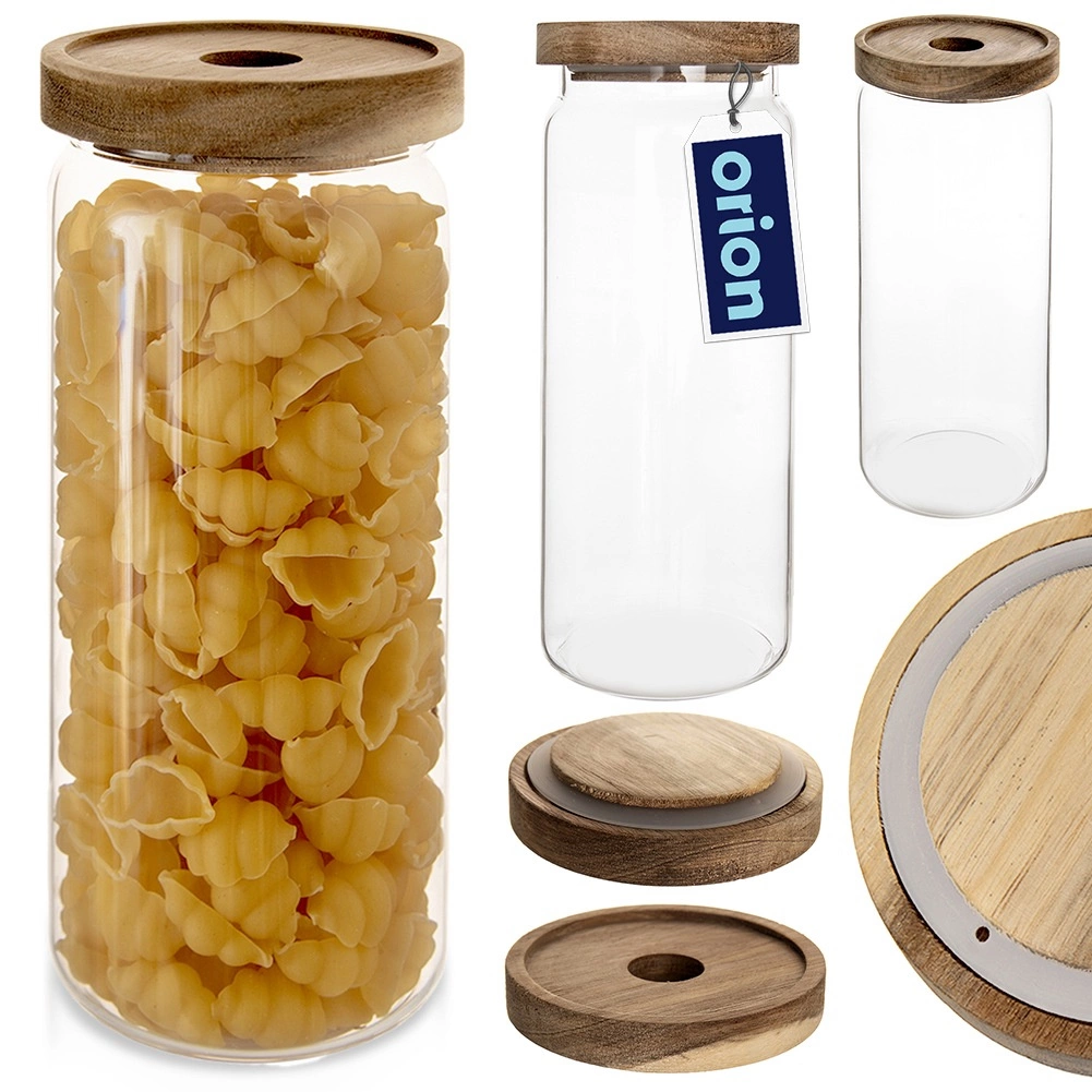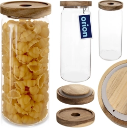 Praktische glazen pot met een inhoud van 1,6 l en een houten deksel met siliconenafdichting houdt je etenswaren langer vers en geurend. Het duurzame borosilicaatglas is ideaal voor dagelijks gebruik, de transparante wanden bieden direct zicht op de inhoud en de elegante look verfraait elke keuken. De pot is geschikt voor koffie, pasta, noten, muesli of andere droge ingrediënten en het glazen gedeelte kan in de vaatwasser.