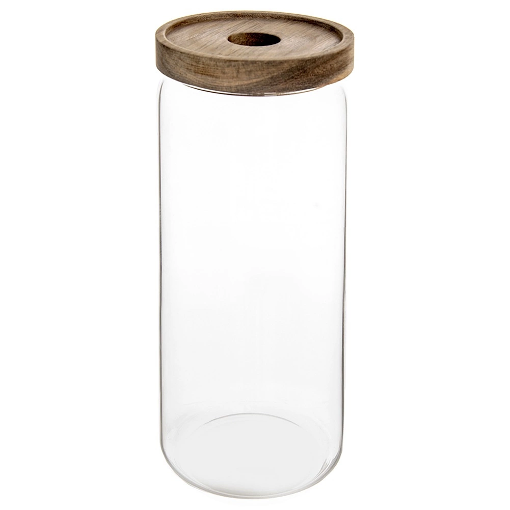 Houd orde in de voorraadkast met deze design glazen pot van 1,6 l. Het stevige borosilicaatglas weerstaat temperatuurschommelingen en dankzij de transparante uitvoering zie je je voorraad in één oogopslag. Het natuurlijke houten deksel met siliconenafdichting zorgt voor een luchtdichte afsluiting en langere versheid van je etenswaren.