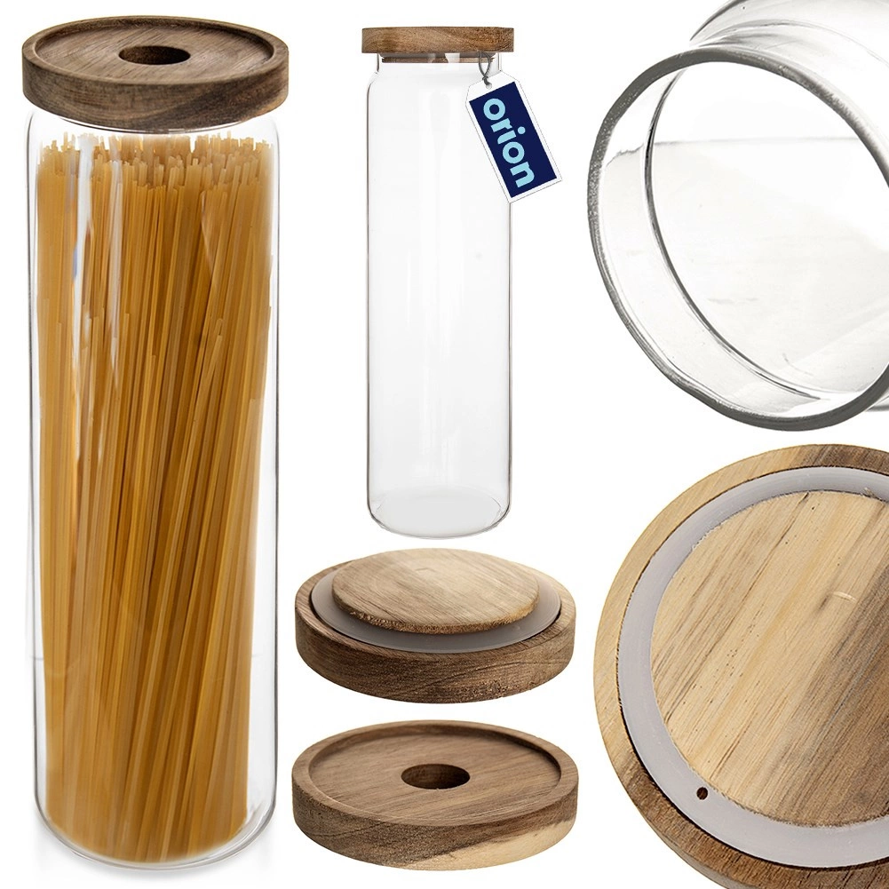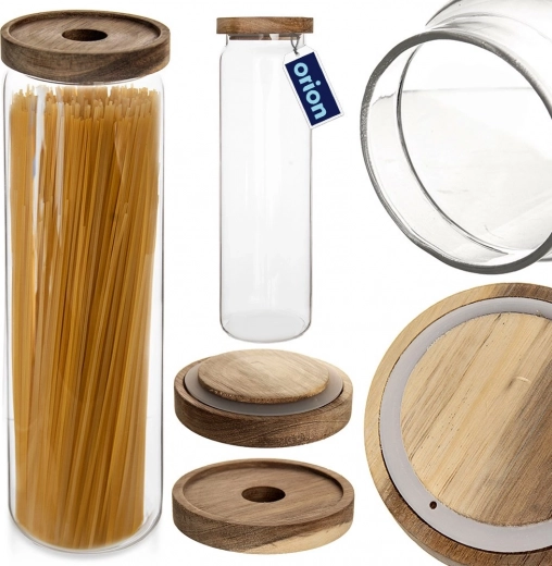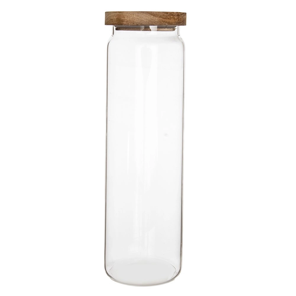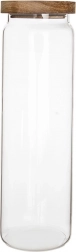 Houd orde in je voorraadkast en op het aanrecht en toon je favoriete ingrediënten in stijl. De hoge glazen pot met natuurhouten deksel en siliconenafdichting zorgt voor veilige, langdurige opslag van droge etenswaren zonder verlies van smaak en aroma. Het transparante borosilicaatglas is bestand tegen temperatuurschommelingen en laat de inhoud prachtig zien.
