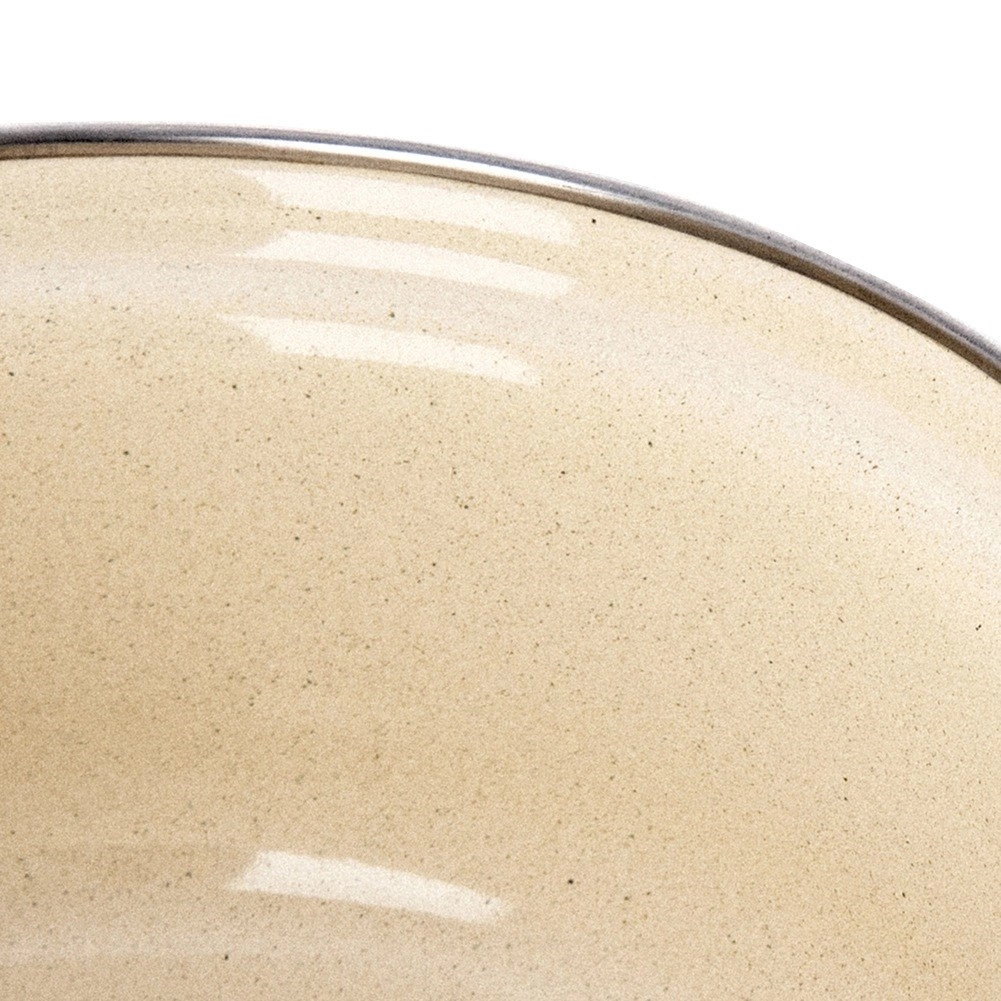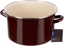 Praktische en stijlvolle geëmailleerde pan in retrodesign met een royale inhoud van 11,5 l, diameter 32 cm en hoogte 17 cm – perfect voor soepen, sauzen en stoofgerechten. Bruine buitenkant met beige binnenkant en roestvrijstalen rand voor duurzaamheid en eenvoudig reinigen, terwijl twee stevige grepen zorgen voor een veilige grip tijdens het hanteren.
