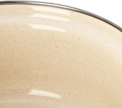 Hoogwaardige emaille aan de binnen- en buitenkant is gemakkelijk te reinigen en veilig voor de gezondheid. De roestvrijstalen rand verhoogt de levensduur en de bestendigheid van de rand.