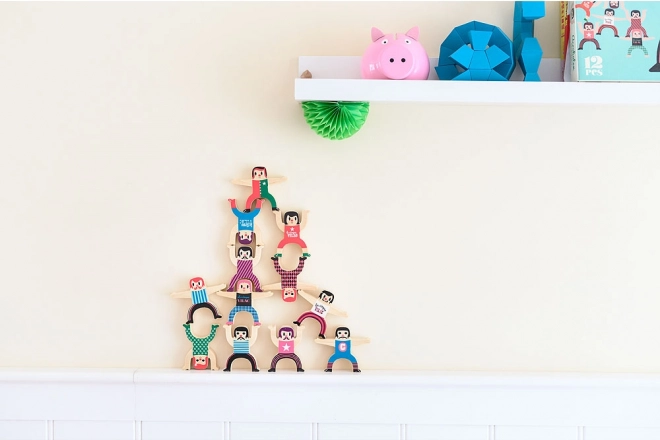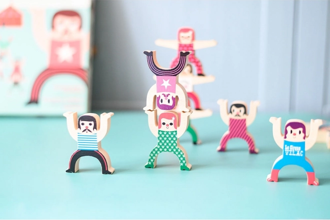 Bouw je eigen toren van acrobaten en test je behendigheid en fantasie. De houten figuurtjes in vrolijke kleuren kunnen in tal van stabiele én gedurfde posities worden gestapeld, waardoor dit speelgoed ideaal is voor samen spelen en het leren van balans.