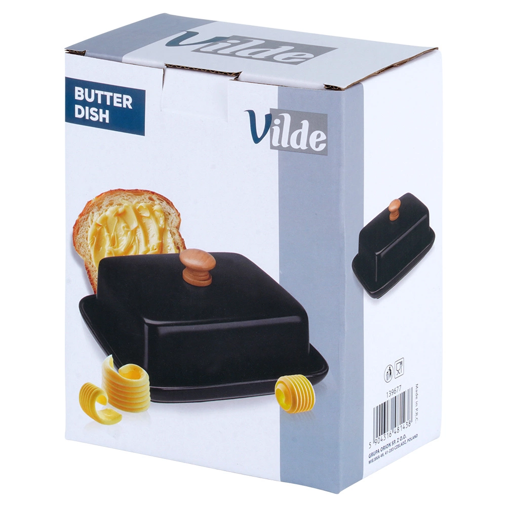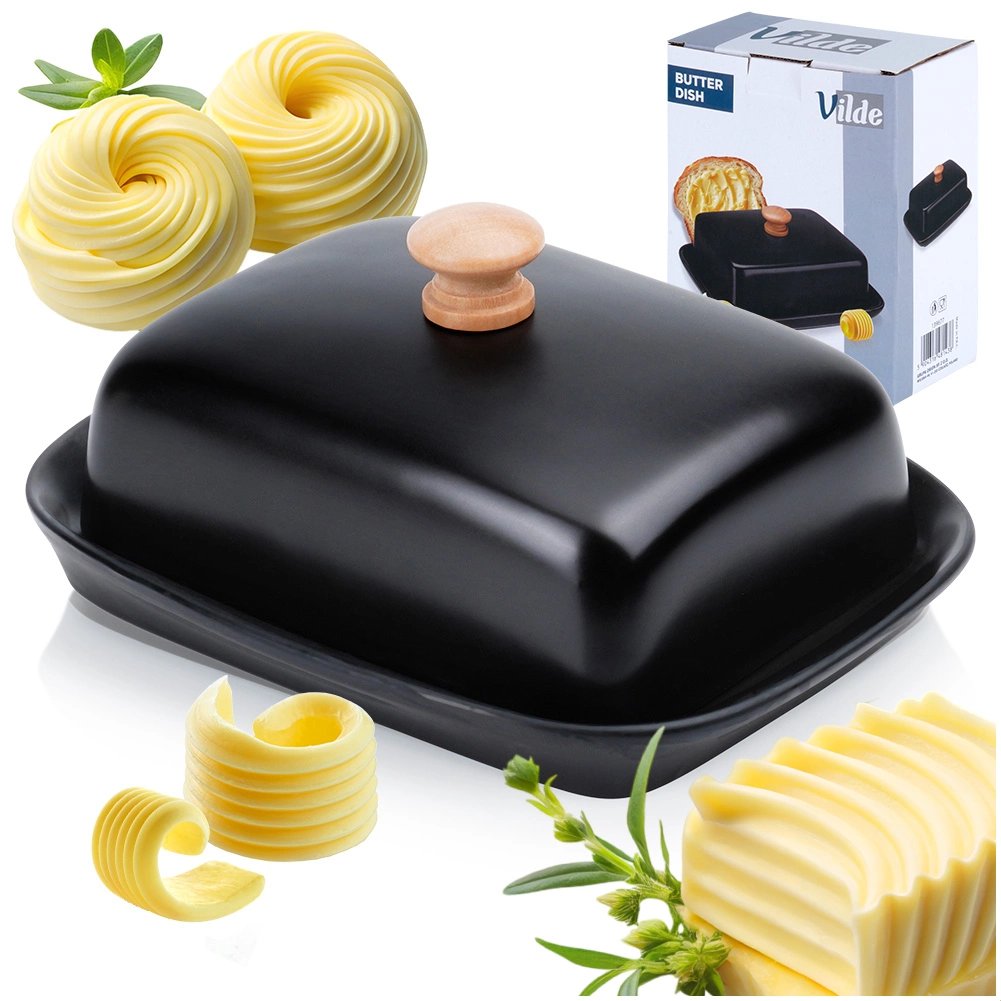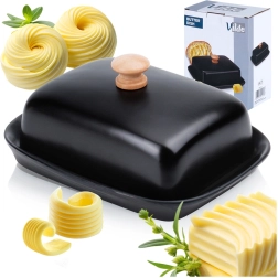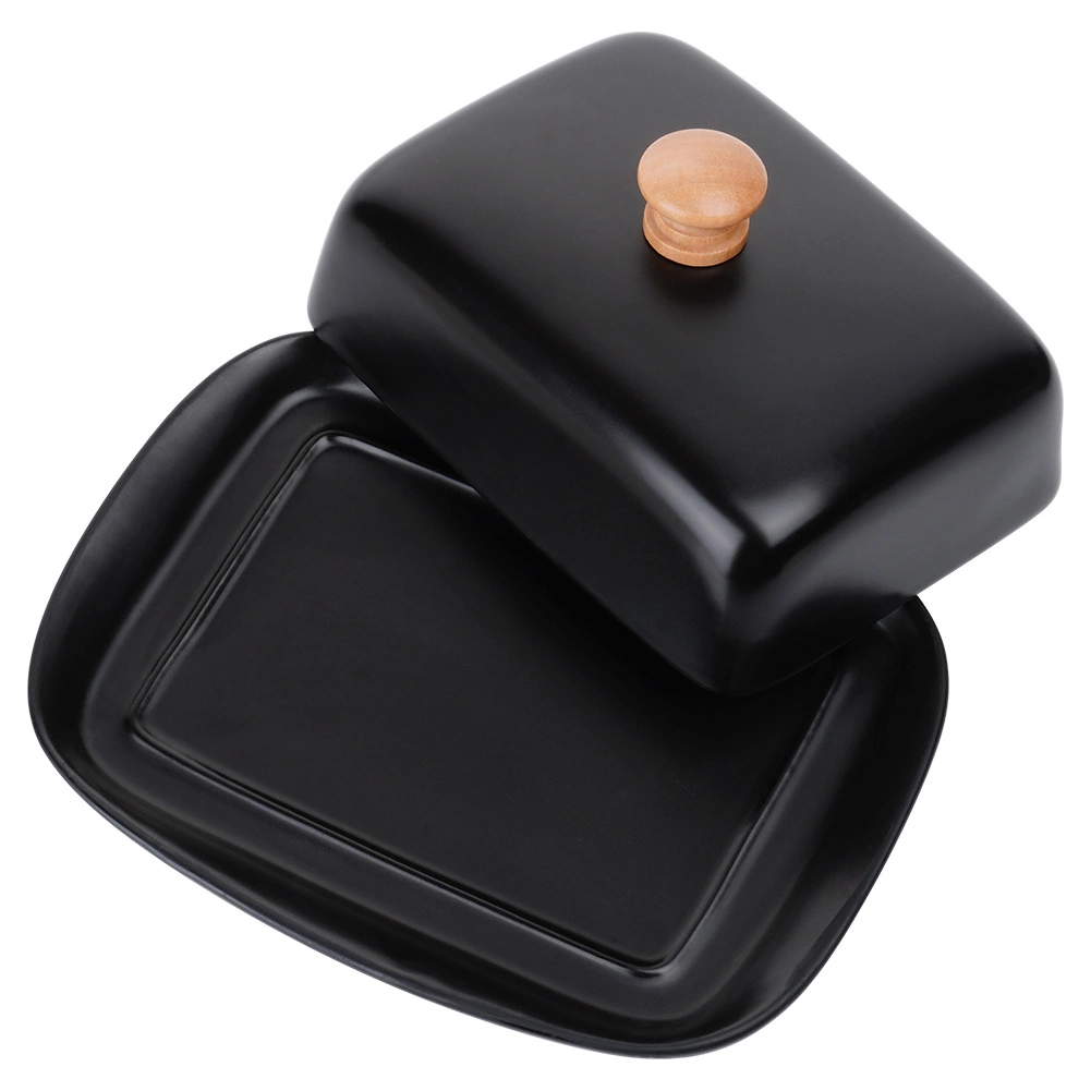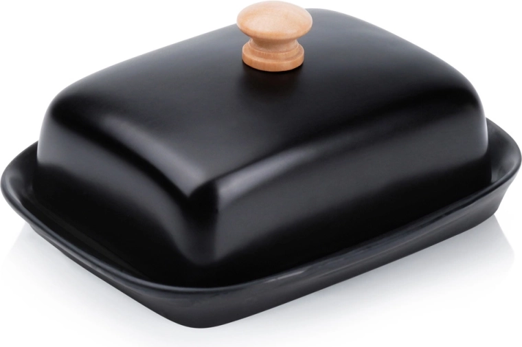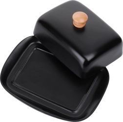Deze stijlvolle botervloot van hoogwaardige keramiek in zwarte uitvoering is ideaal voor dagelijks gebruik thuis en voor serveren aan tafel. De houten greep op het deksel zorgt voor comfortabel optillen, terwijl de nauwsluitende kap de boter beschermt tegen uitdrogen en vreemde geuren.