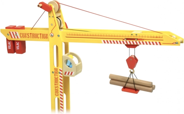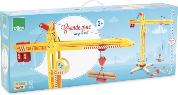 Ontdek de grote houten VILAC-kraan, die elke kinderkamer verandert in een levendige bouwplaats. Biedt volledige rotatie, heffen en verplaatsen van ladingen met twee knoppen, een stabiele brede basis en rijk accessoires, inclusief een magneet, figuurtjes en ladingen. De robuuste combinatie van massief hout en multiplex met veilige, niet-giftige verven garandeert een lange levensduur en veilig spel.