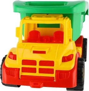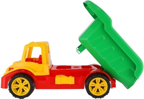 Deze kiepwagen is ontworpen met een grote nadruk op duurzaamheid omdat hij gemaakt is van hoogwaardig plastic. Brede en grote wielen maken het gemakkelijk om verschillende oppervlakken te overwinnen. Kinderen kunnen een reeks kleine schatten of speelgoed in de laadbak plaatsen.