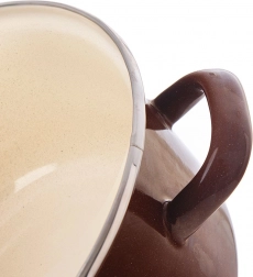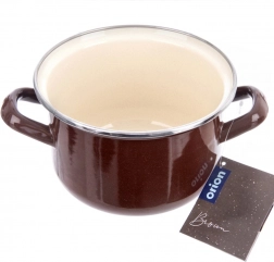 De pan uit de BROWN-serie combineert een tijdloze uitstraling met dagelijks gebruiksgemak. Bruin geëmailleerd staal met een zilverkleurige roestvrijstalen rand en een crèmekleurig interieur past in zowel moderne als rustieke keukens. Met een inhoud van 1,4 l, een diameter van 16 cm en een hoogte van 10 cm is hij perfect voor soepen, sauzen, pap of kleinere porties bijgerechten.