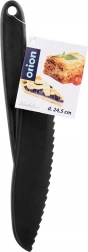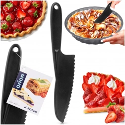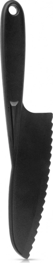Dit gekartelde taartmes uit de BLACKLINE-collectie is ideaal voor het snijden van biscuitbodems en het portioneren van taarten en cakes. De lichte en duurzame kunststof constructie in het zwart zorgt voor een lange levensduur en comfortabel dagelijks gebruik.