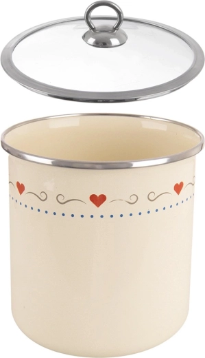 Hoogwaardige emaille op staal is huidvriendelijk, eenvoudig te reinigen en bestand tegen dagelijks gebruik. De crèmekleur met hartjes geeft elke keuken een frisse look.