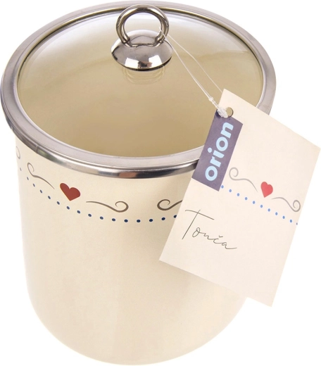Stijlvolle keukendoos met een inhoud van 1,4 l van geëmailleerd staal in crèmekleur met hartjes en een transparant glazen deksel houdt voedsel langer vers. Ideaal voor meel, suiker, koffie, thee en droge levensmiddelen. Dankzij de roestvrijstalen rand is hij duurzaam en eenvoudig te reinigen, bovendien geschikt voor de vaatwasser.