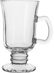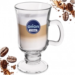 Elegant latteglas met een inhoud van 250 ml, voorzien van een stabiele voet en comfortabel oor, ideaal voor het serveren van latte, cappuccino, thee en glühwein. Gemaakt van duurzaam helder glas, geschikt voor dagelijks gebruik thuis en in de horeca en vaatwasmachinebestendig.