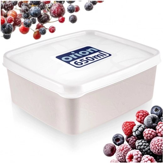 Praktische kunststof voedselbox met een inhoud van 650 ml en een sluitend deksel houdt je eten langer vers, zowel thuis als onderweg. Hij is BPA-vrij, geschikt voor de vaatwasser, magnetron (zonder deksel) en vriezer, en past dankzij de compacte afmetingen gemakkelijk in de koelkast of keukenkast.