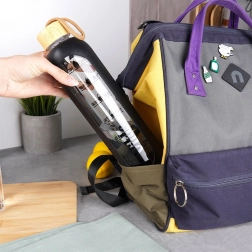 De fles past gemakkelijk in het zijvak van een rugzak. Hij is licht, herbruikbaar en perfect voor dagelijkse hydratatie thuis, op kantoor en onderweg.